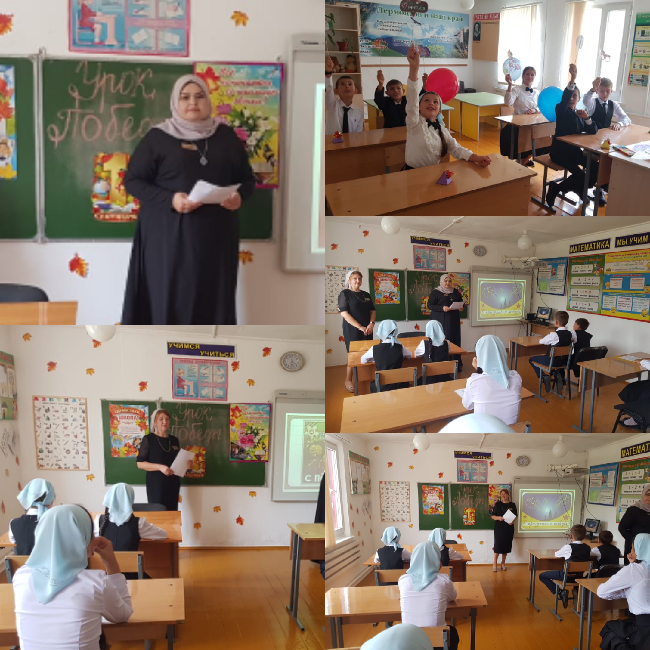 После торжественной линейки во всех классах (1-9)прошли Уроки Победы и кл.часы Памяти Первого Президента ЧР, Героя России А.А.Кадырова.