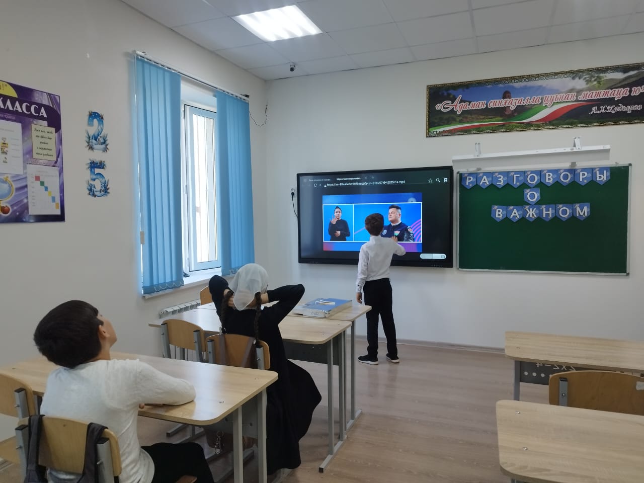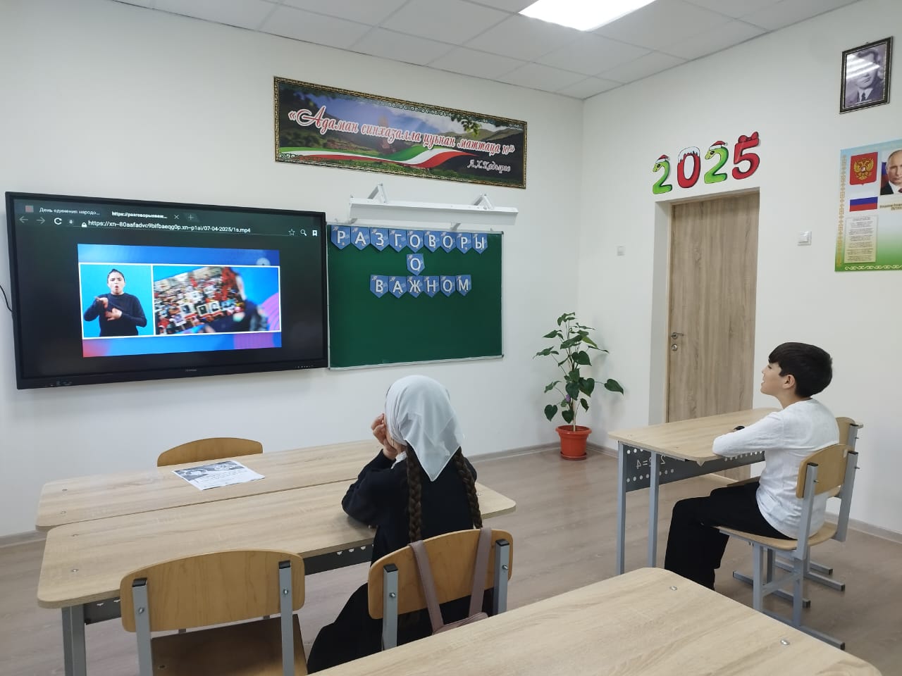 Магомедова Р.Р. активно вовлекала учеников в дискуссию, что позволило каждому высказать свое мнение и поделиться мыслями по данной теме. Все участники занятия пришли к выводу, что единение народов — это сила, способствующая миру и процветанию.