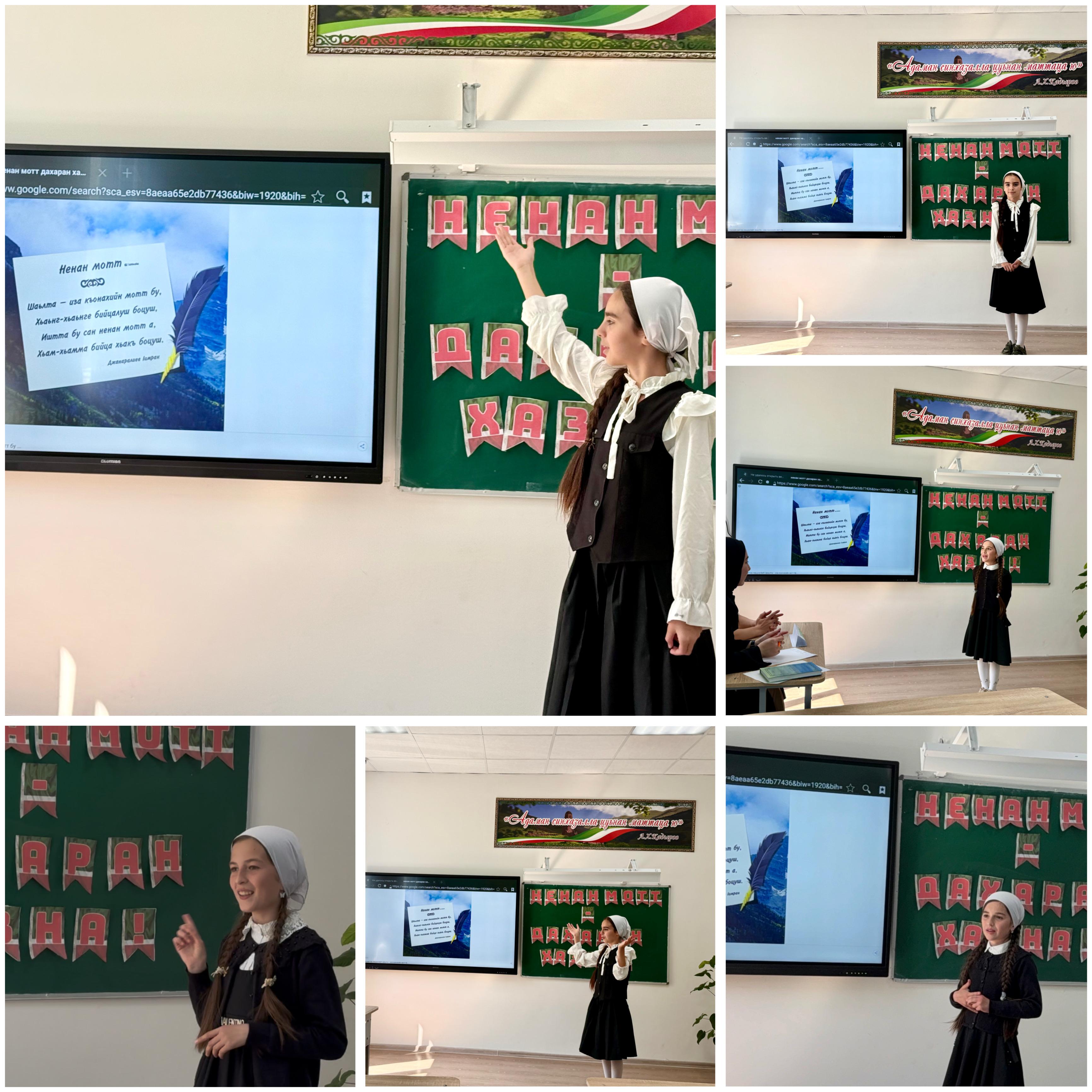 В конкурсе приняли участие учащиеся 5–9 классов, которые заранее подготовили и выразительно прочитали стихотворения чеченских поэтов. Участники продемонстрировали хорошее знание родного языка, выразительность речи, артистизм и искренние чувства, вложенные в исполнение.