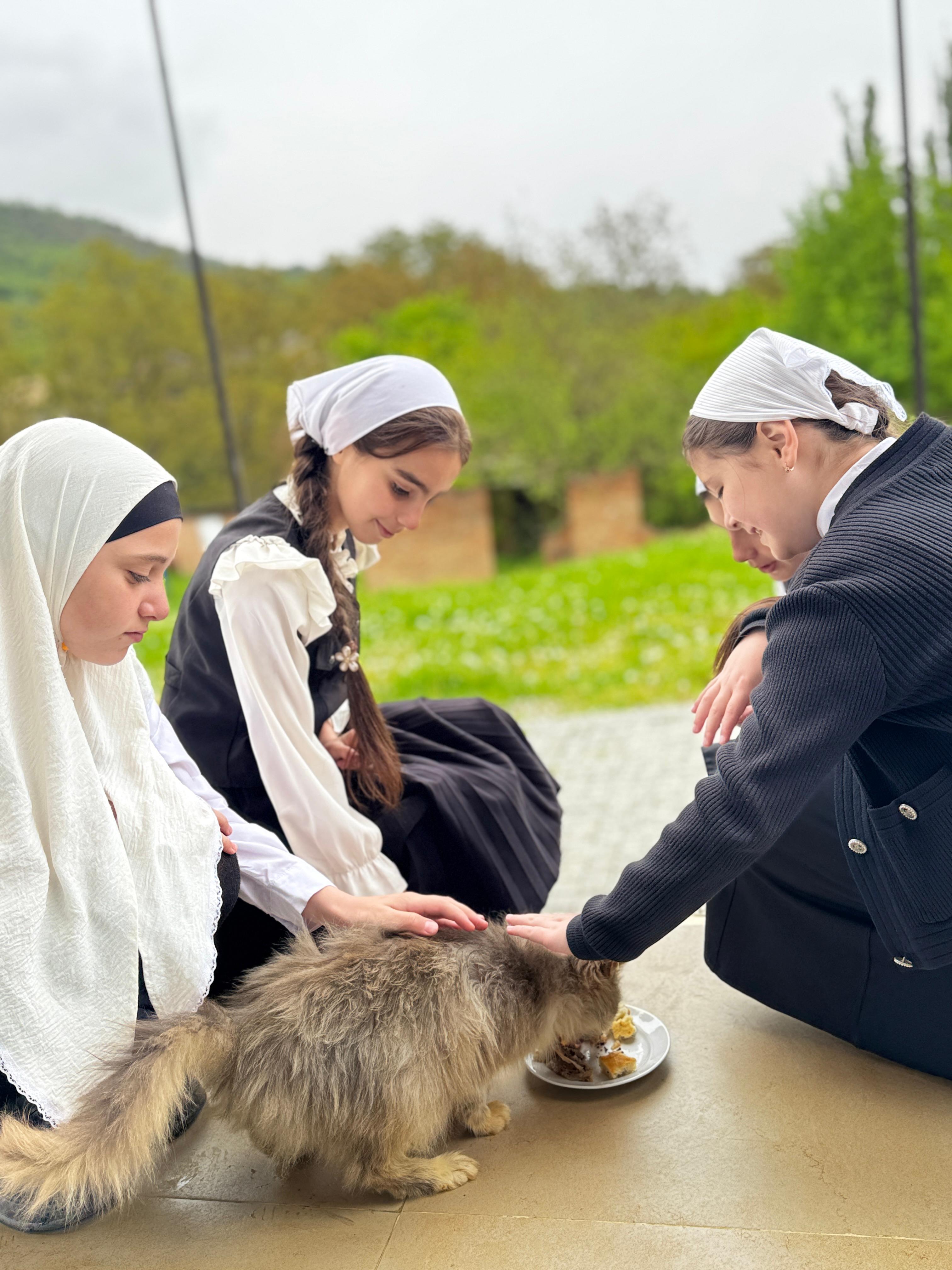 Кроме того, наши активисты не забыли и о бездомных котах, которые иногда заглядывают к нам во двор. Дети принесли еду, покормили пушистых друзей и поиграли с ними, подарив немного тепла и заботы.