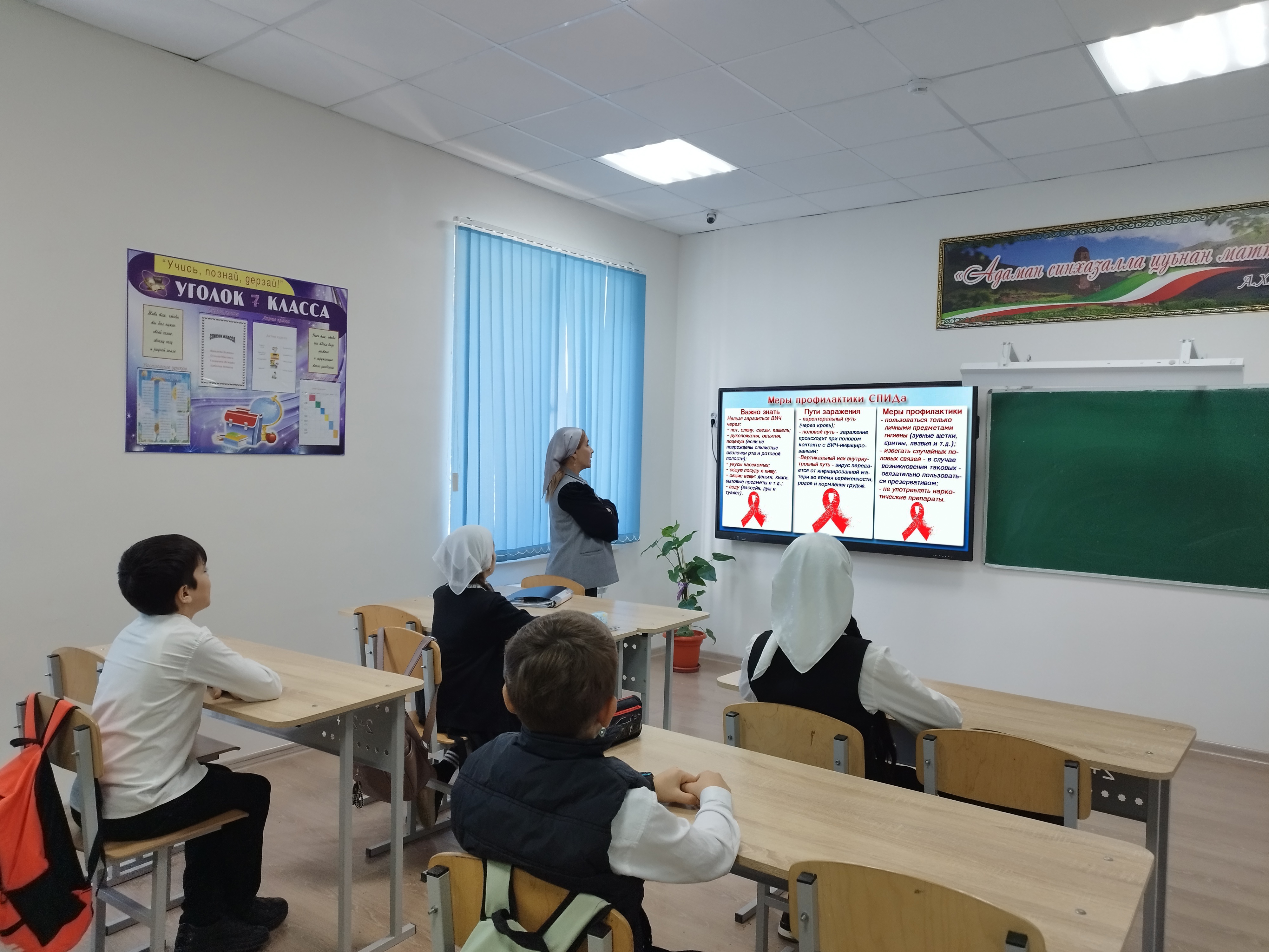 01.12.2025Классный руководитель 8 класса Магомедова Р.Р. рассказала школьникам о профилактике и лечении ВИЧ-инфекции. Учащиеся получили представления о распространённости болезни в мире, способах её передачи, современных методах диагностики и возможностях медицины в лечении и профилактике этого заболевания.