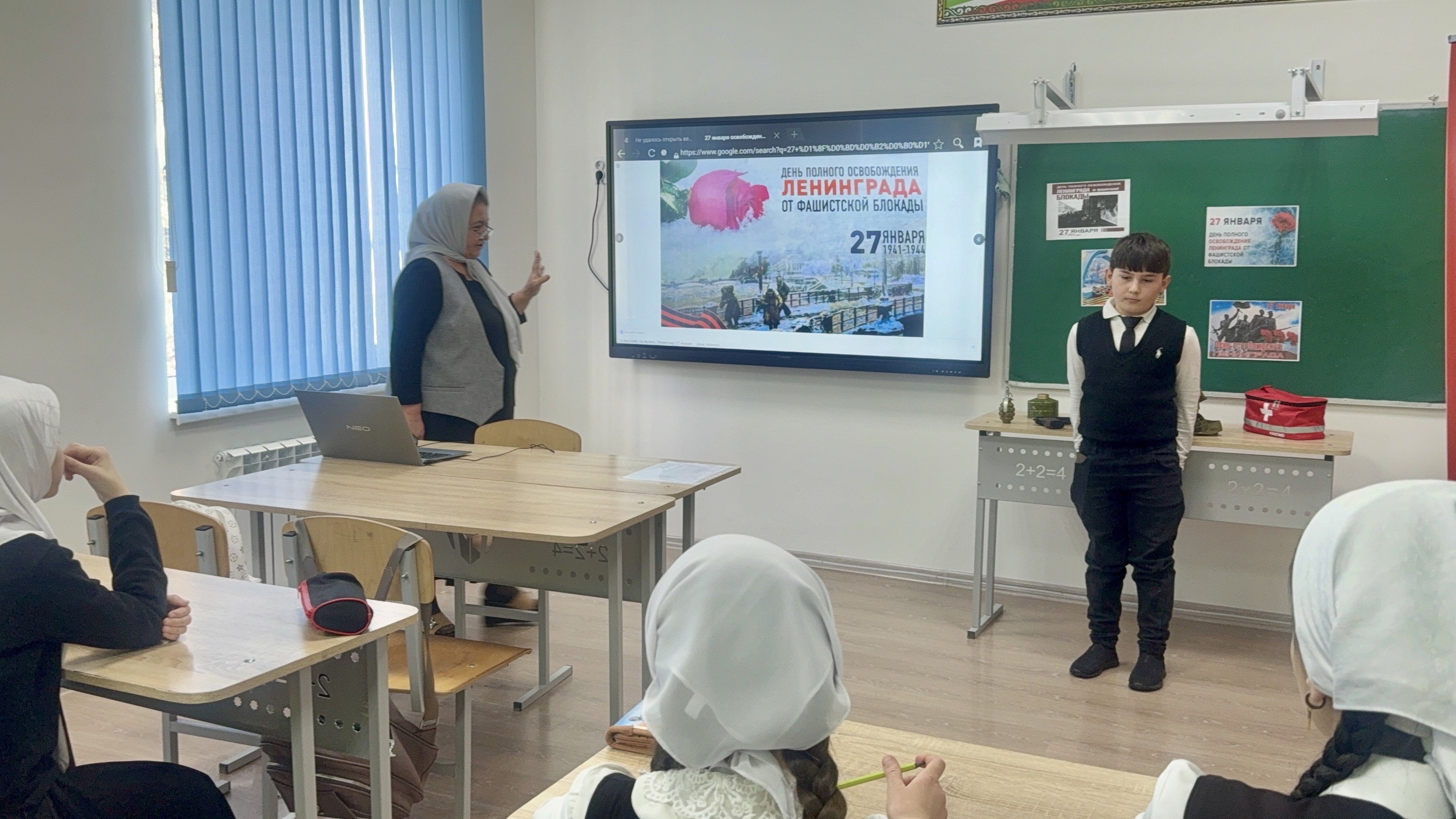 30.01.2026В 5 классе прошёл особенный классный час, посвящённый Дню снятия блокады Ленинграда. Классный руководитель Юсупова У.Б. провёла для ребят трогательную и глубокую беседу о подвиге ленинградцев — о тех 900 днях, когда город стоял насмерть, а люди делились последним куском хлеба.Ребята с вниманием слушали рассказы о героях-ровесниках: Тане Савичевой, Лёне Голикове, о юных защитниках неба Ленинграда. Многие впервые увидели фотографии блокадного города — и в их глазах читалось и боль, и гордость. Главное, что унесли с собой ребята: память — это не просто дата в календаре. Это живая нить, связывающая нас с теми, кто ценой невероятного мужества сохранил для нас мирное небо.Вечная память героям. Лениград жив!